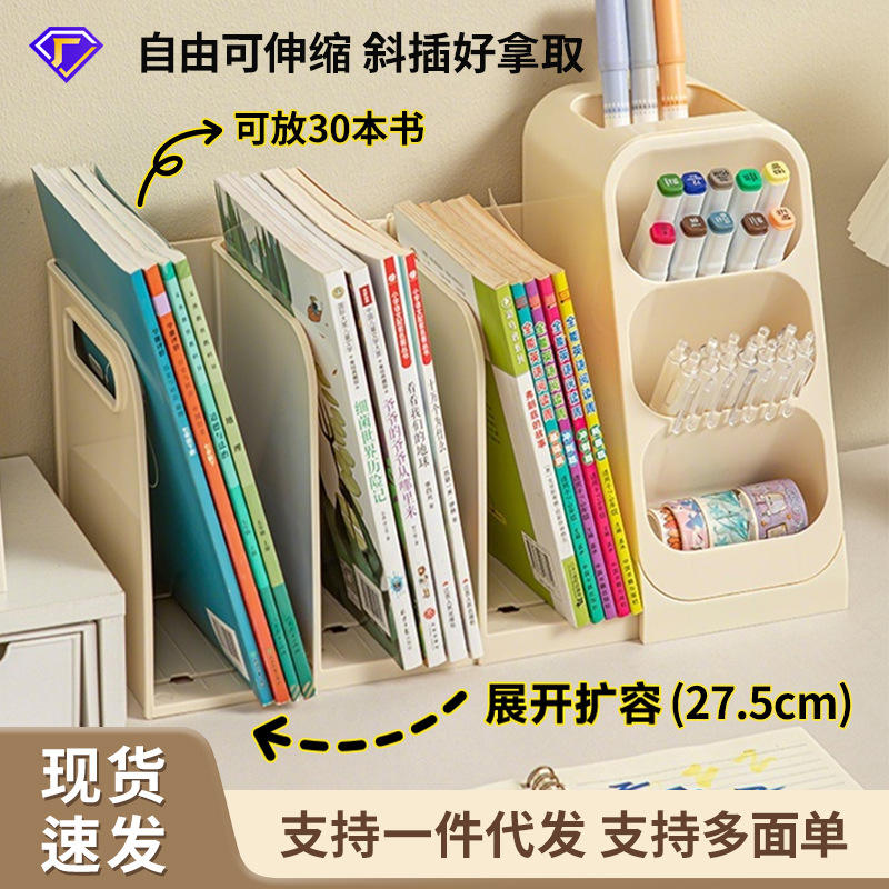 Estantería de escritorio extensible, gruesa, clasificada, 2 en 1, caja de almacenamiento de papelería de gran capacidad para dormitorios, bolígrafos de dibujo