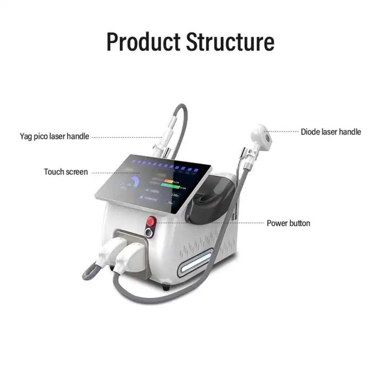 Tecnología:2 en 1, diodo de 808nm, terapia láser de diodo, láser Q-switched, Nd:YAG