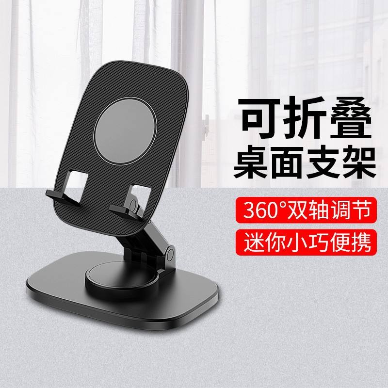 Desktop Folding Phone Holder Adjustable Rotating Double Axis Mini Portable Desk Stand Black