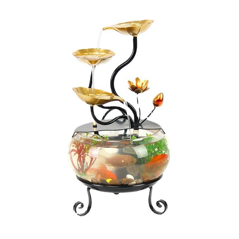 Pecera de Vidrio de Escritorio con Fuente de Agua Corriente, Redonda, Automática, Fácil de Limpiar, Regalo Empresarial