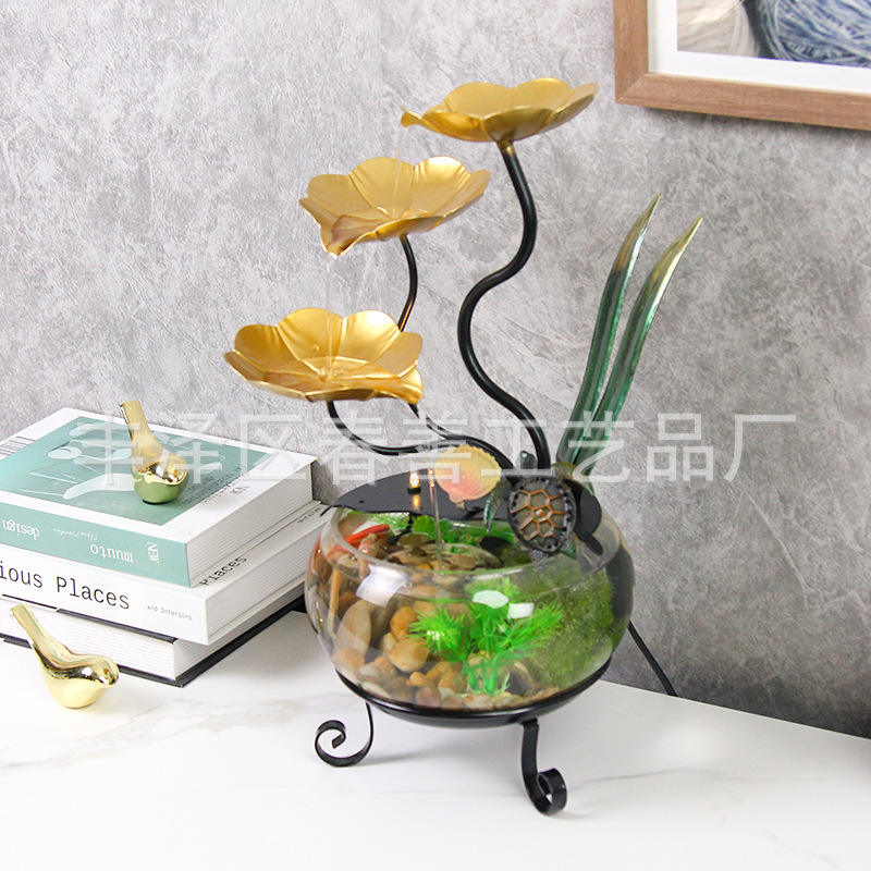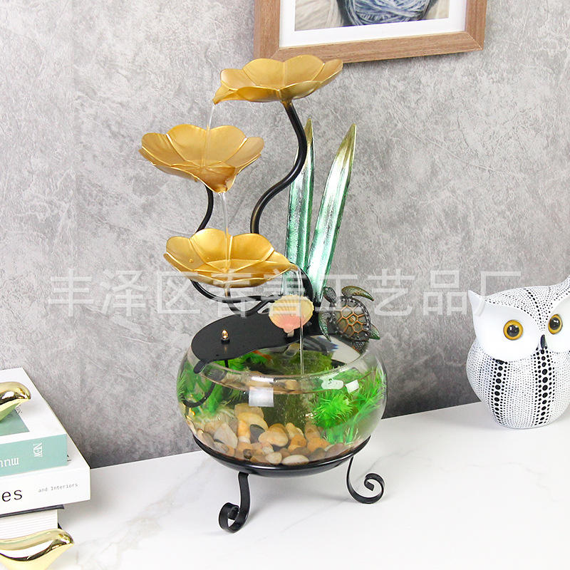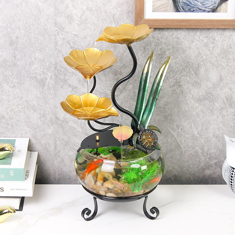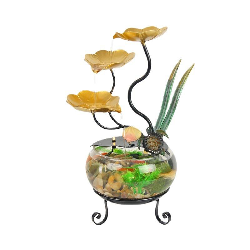 Pecera de Vidrio de Escritorio con Fuente de Agua, Diseño Circular Elegante para Oficina, Decoración del Hogar, Regalo, 110-240V, Fácil de Limpiar