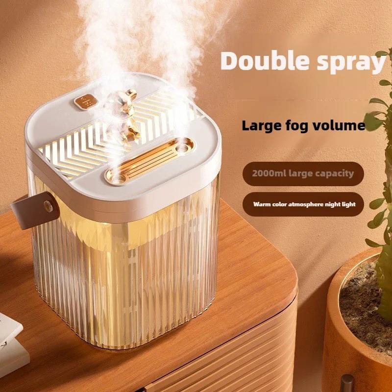 Humidificador de Escritorio para el Hogar y Dormitorio, Gran Capacidad, Luz Ambiental, Doble Boquilla, Super Pulverizador de Niebla
