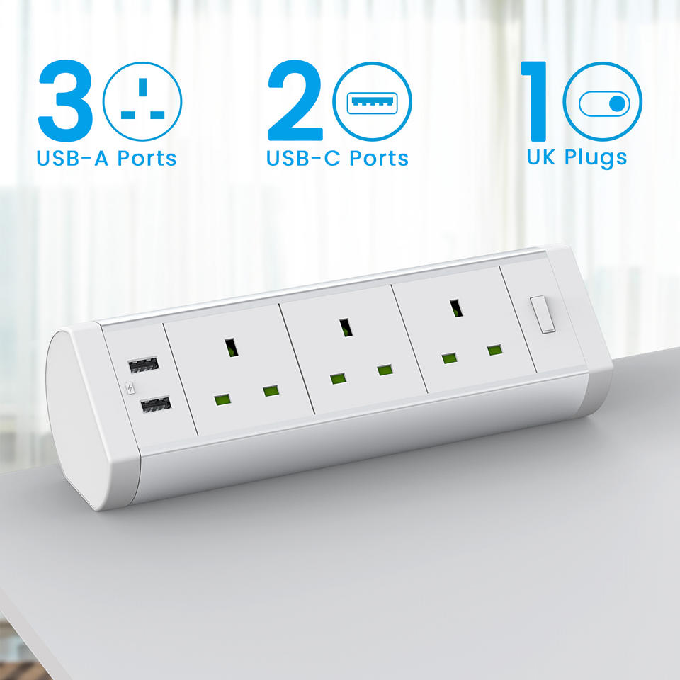 Toma de corriente de escritorio con abrazadera extraíble, tira de alimentación de pie para escritorio de oficina con enchufe de mesa Usb, Protector contra sobretensiones