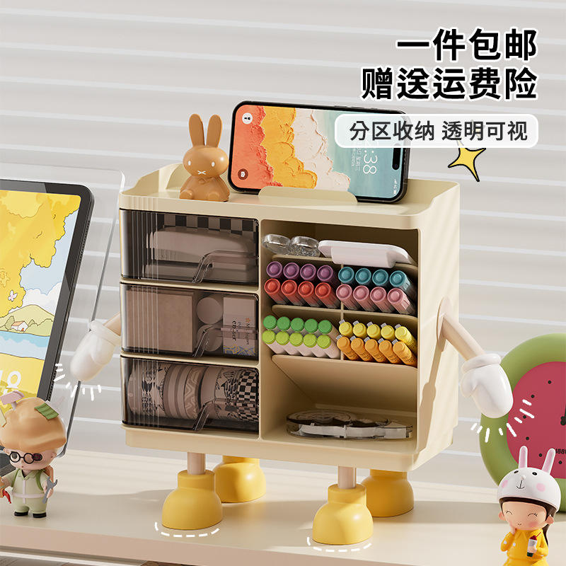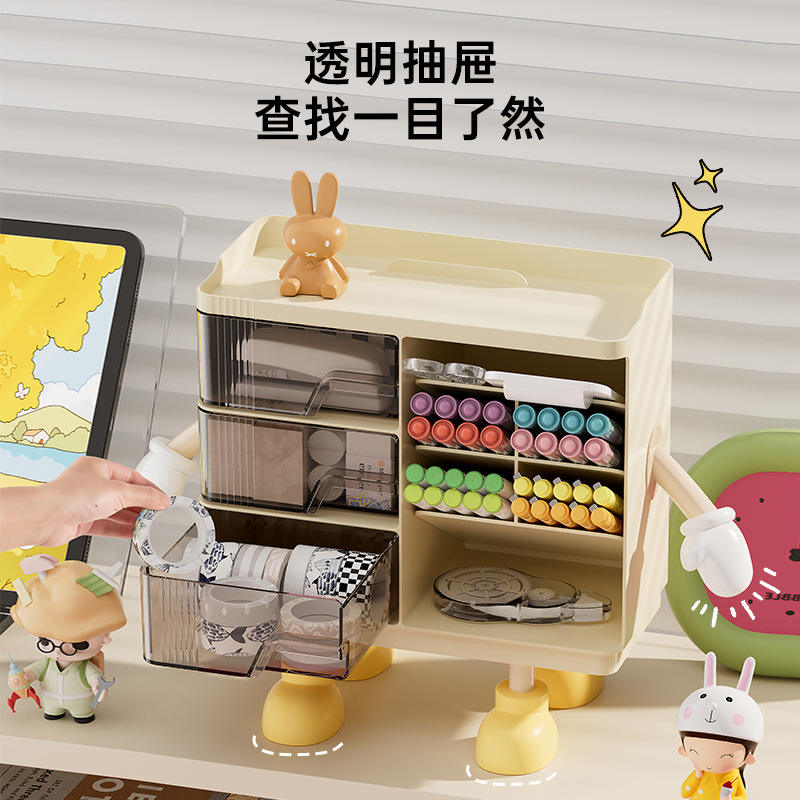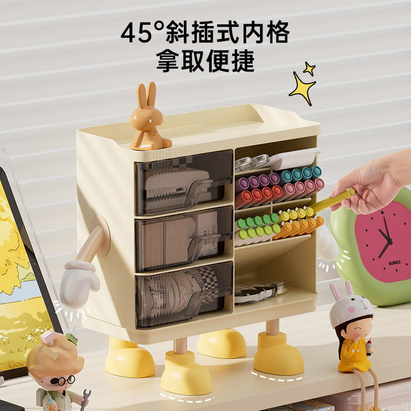 Caja de almacenamiento de escritorio con cajón inclinado, soporte para bolígrafos, organizador de papelería transparente con compartimentos, gran capacidad, multifuncional