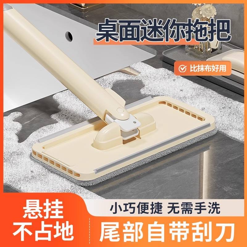 Mopa de Escritorio con Soporte Rectangular de PVC Espumado Color Crema con Fuerte Ventosa y Gancho, Modelo 2024, Mopa Plana Manos Libres