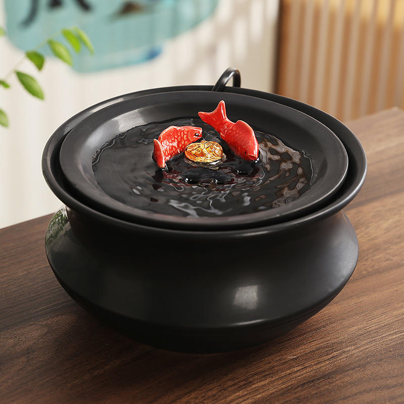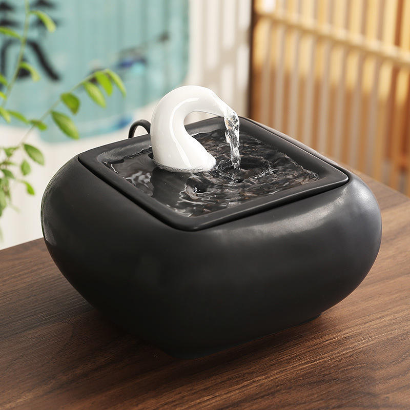 Fuente de agua de escritorio de cerámica redonda eléctrica con retroiluminación para decoración de sala de estar u oficina