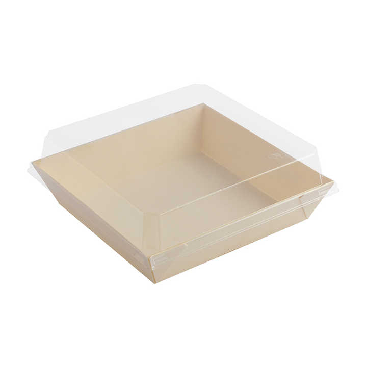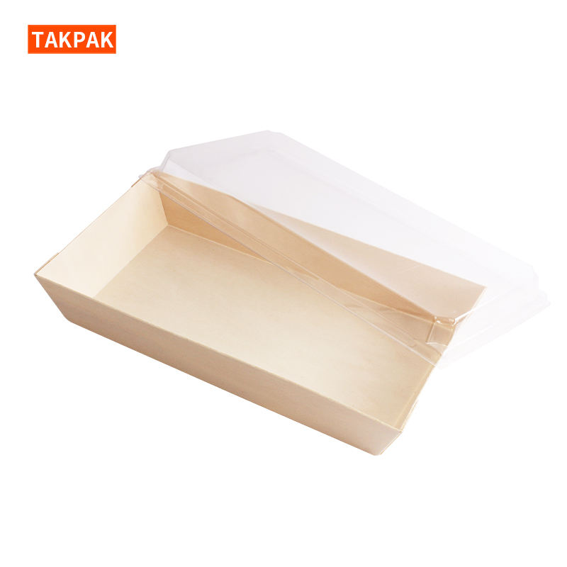 Recipiente de postre con cubierta de plástico transparente Plato de madera para llevar Caja de sushi Fiambrera japonesa pastel Donu