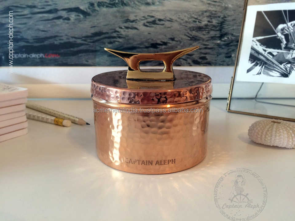 Recipiente de postre de latón puro con forma redonda vintage, perfecto para utensilios de cocina elegantes y uso decorativo con tapa de base plana