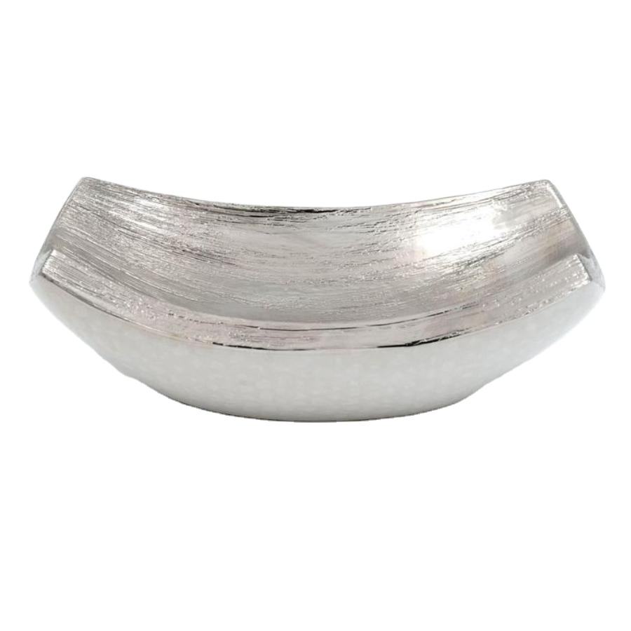 Plato Decorativo Plateado para Postres, Cuadrado con 4 Esquinas Cortadas, Tazón de Metal para Servir, Ideal para Panaderías, Tazón Decorativo con Logotipo