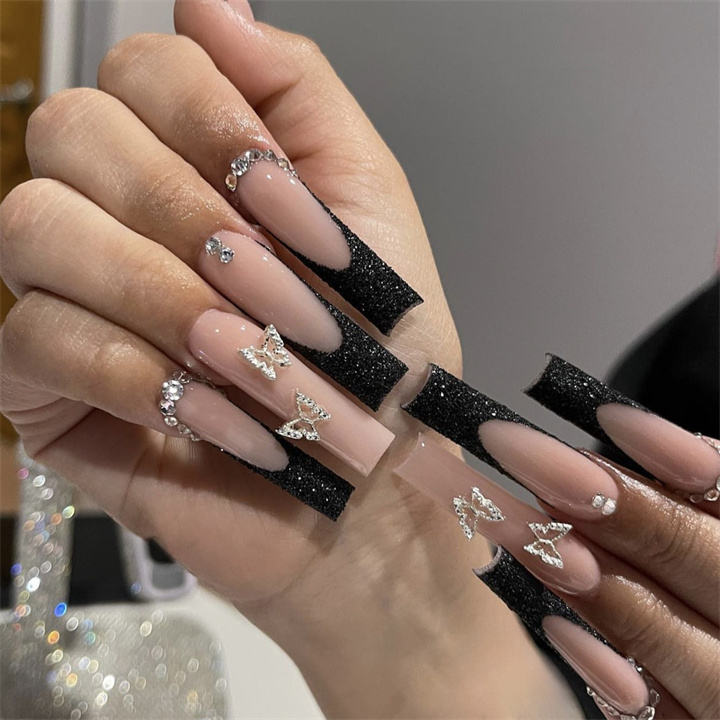 Prensa de tubería de agua mediana y larga con grafiti colorido desmontable en las uñas Prensa de uñas postizas acrílicas hechas a mano en las uñas