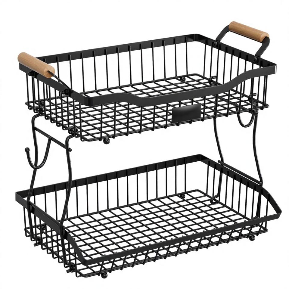 Cesta Plegable Rectangular de Alambre Doble Desmontable para Pan y Frutas, Soporte de Cocina Multifuncional para Verduras, Montado en la Pared