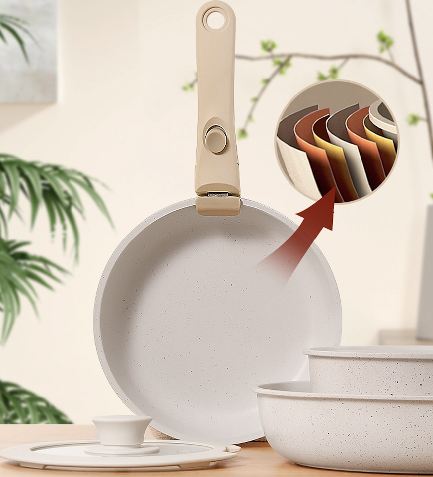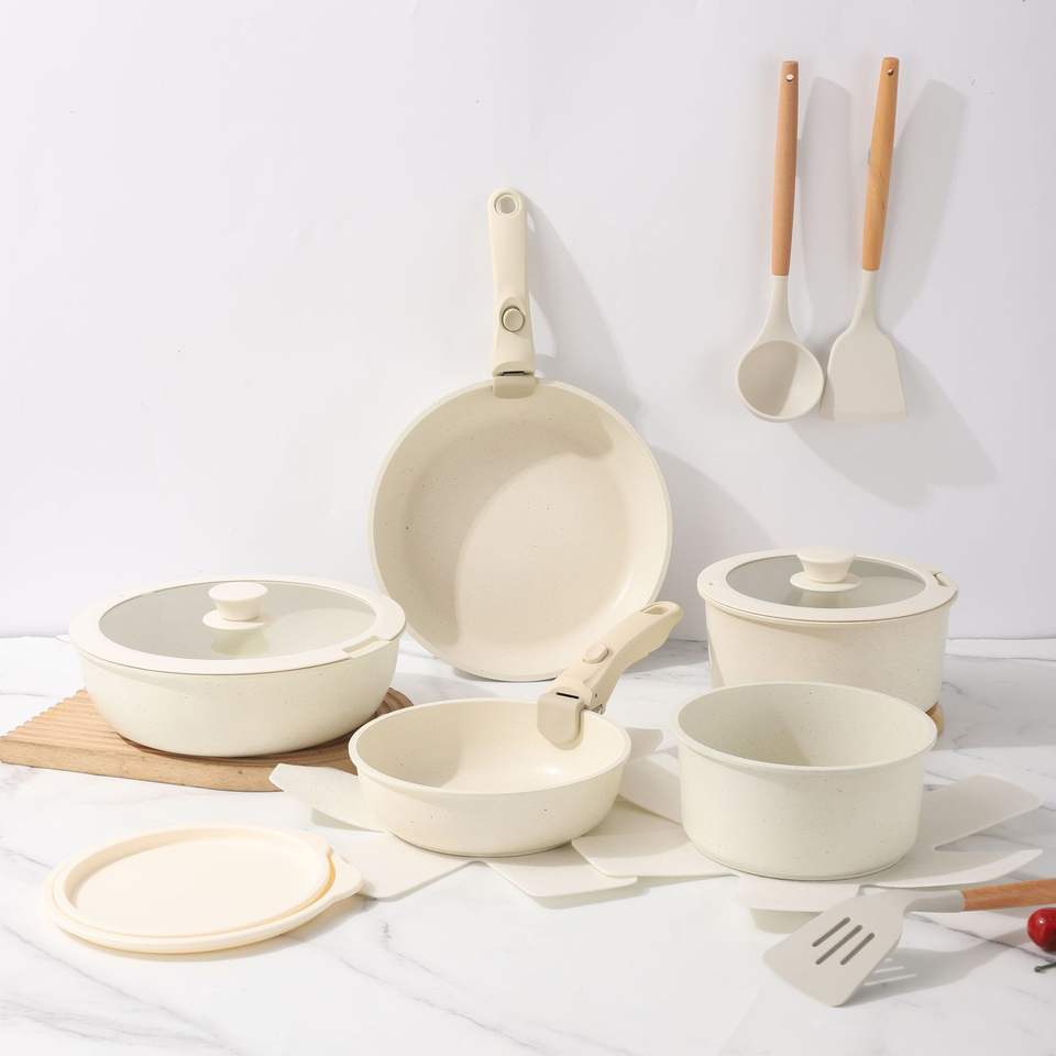 Juego de Utensilios de Cocina con Mango Desmontable, Sartén y Cacerola Antiadherentes, Ollas de Aluminio, Juegos de Cocina con Revestimiento Cerámico y Granito Antiadherente