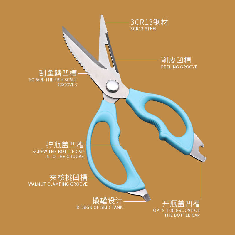 Detachable Kitchen Scissors Stainless Steel Multi Functional For Fish Vegetable Chicken Bone Cutting With Sleeve