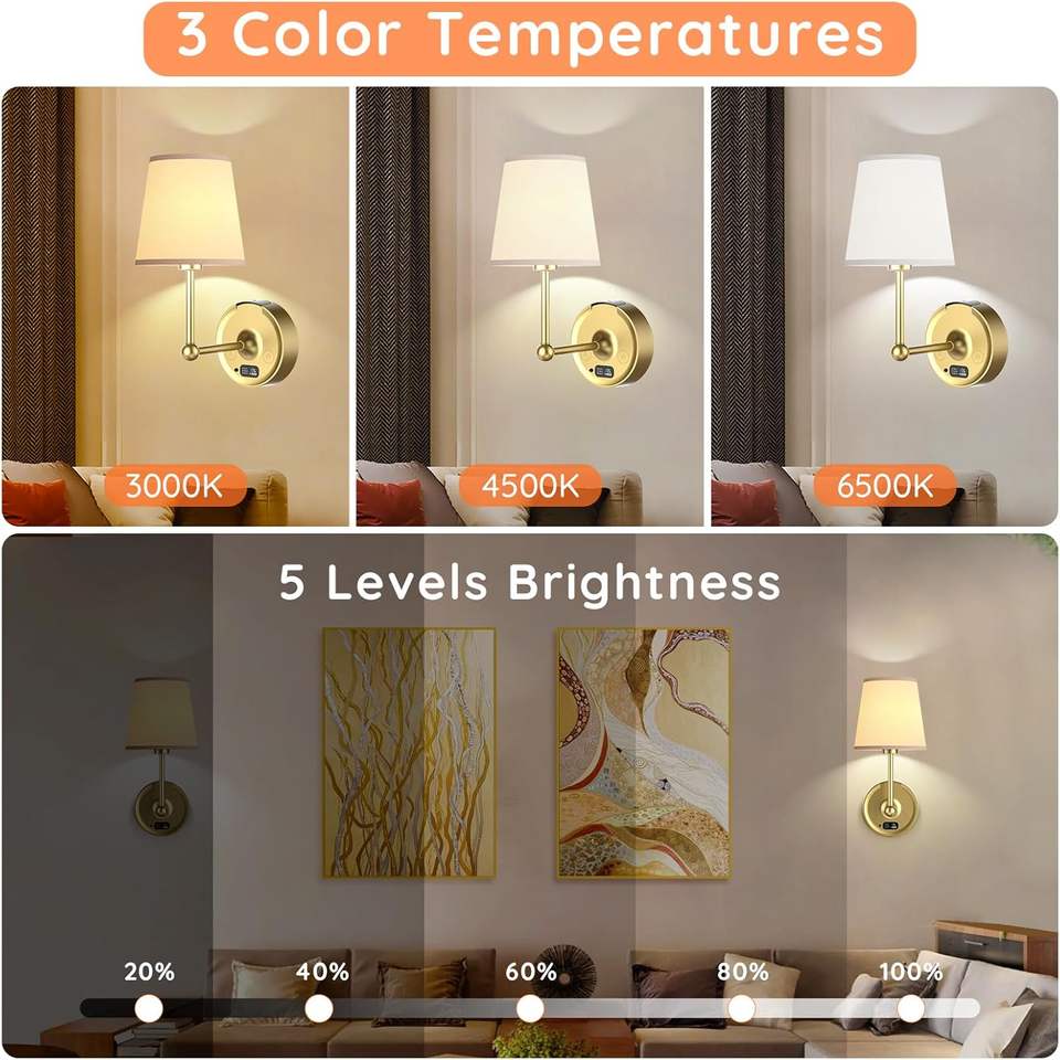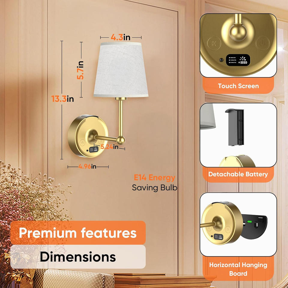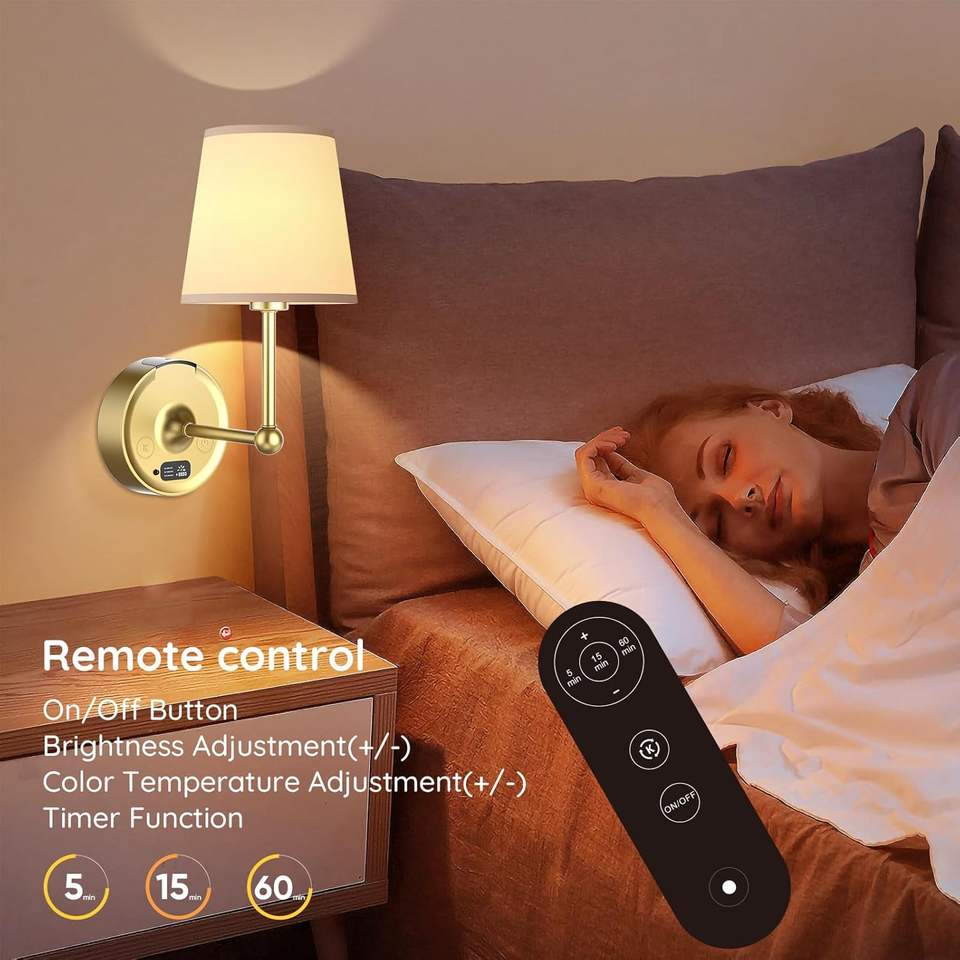 Lámparas de Pared LED con Batería Recargable Desmontable, con Control Remoto Regulable, Diseño Moderno para Dormitorio, Sala de Estar