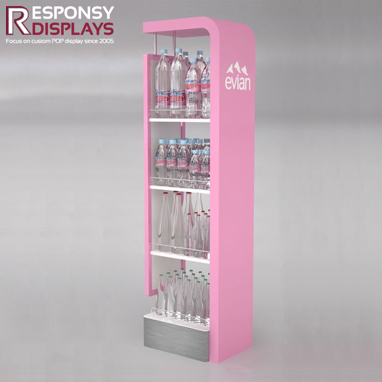 Estante de exhibición de 2 lados desmontable y extraíble, estante de madera rosa y metal para botellas de agua mineral y latas de refrescos, diseño elegante