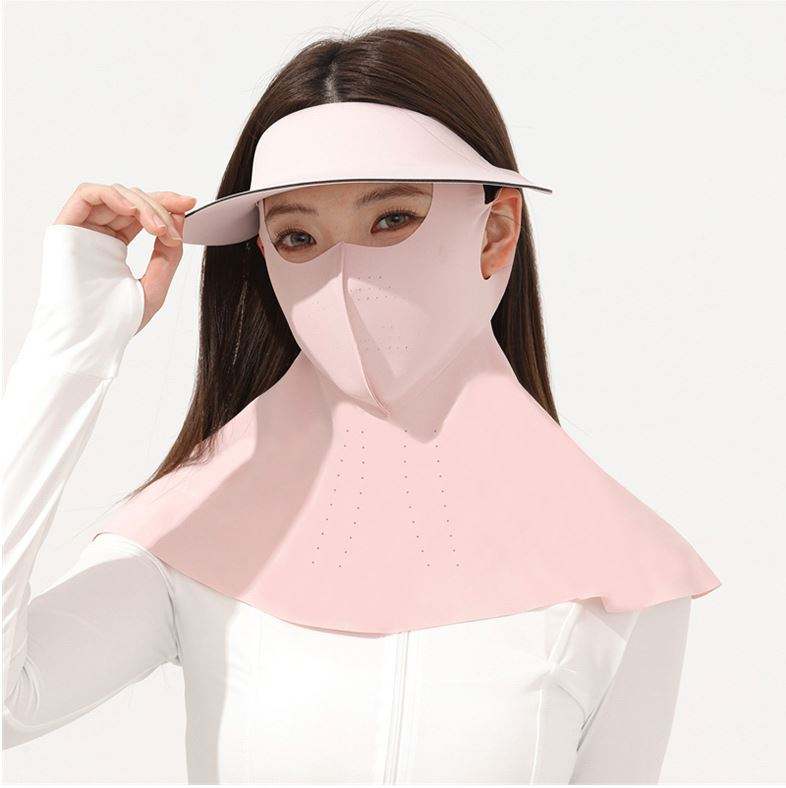 Mascarilla Facial Desmontable con Protección Solar y Visera, de Seda Helada, Protección UV, para Mujer, para Exteriores