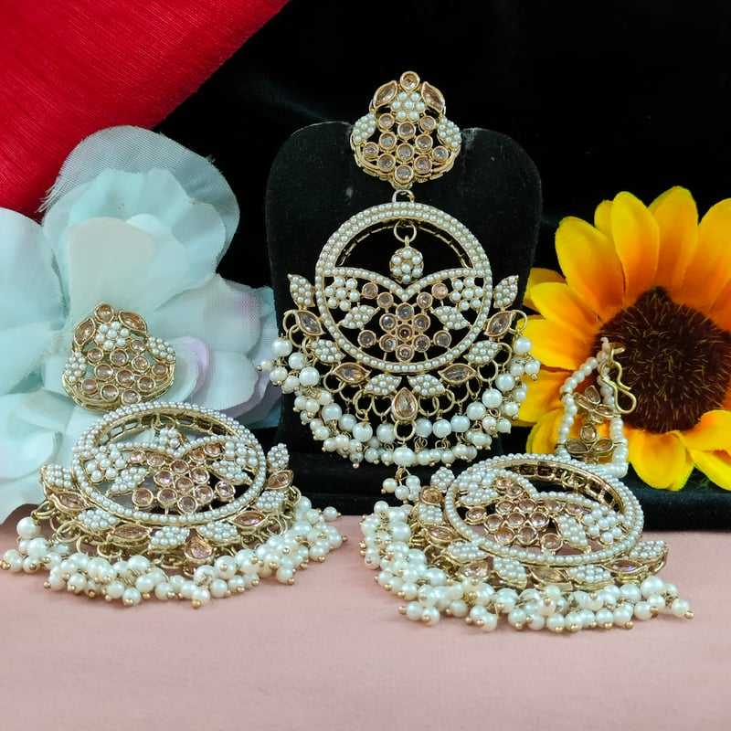 Producto:Perlas Kundan Polki Glass Chandbalis With Maang Tikka