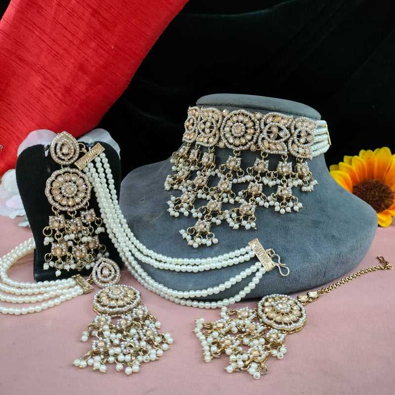 Juego de gargantillas con maang tikka de Minimal Pearls Work