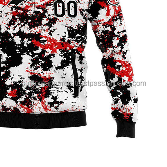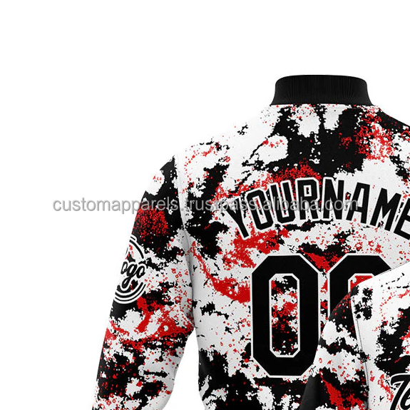 Chaqueta universitaria personalizada con logotipo frontal de cuello levantado bordado intrincado-Modelo de patrón detallado de lana y cuero 2017