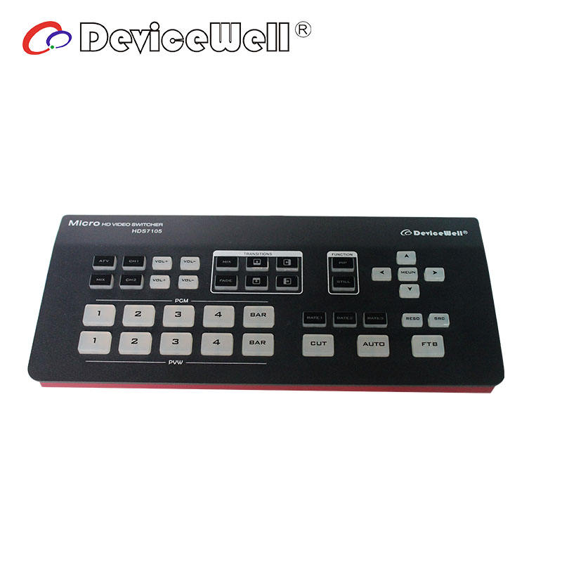 Mezclador de Video Super Mini HDS7105 de DeviceWell, 4 Entradas HD-MI + 1 Entrada DP, 5 Canales, 1080P, Transmisión OBS, Mezclador de Video HD SDI VS ATEM Mini Pro