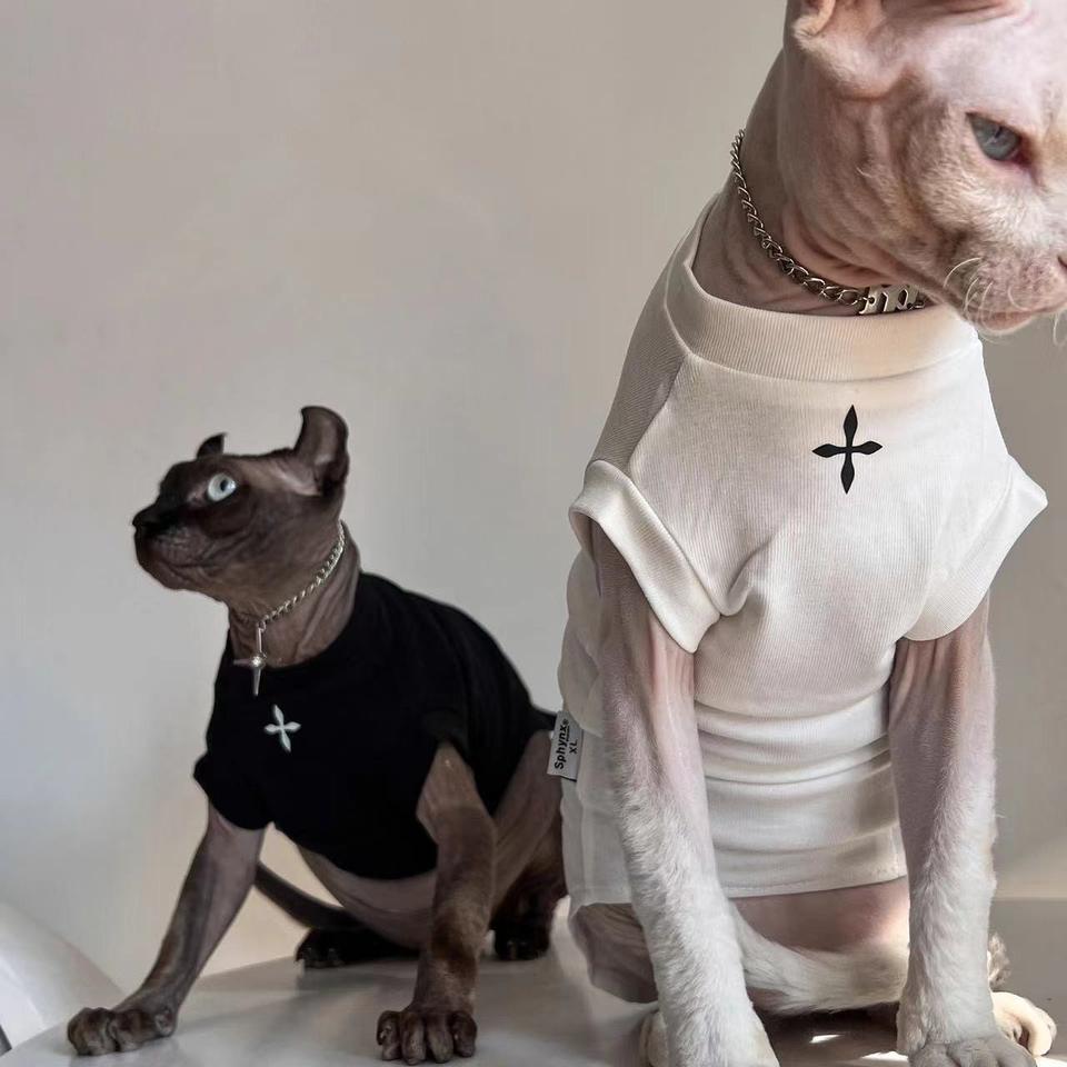 Devins High-End Sin mangas Poliéster Gato y perro Ropa para mascotas Patrón sólido Todas las estaciones Gato Sphynx sin pelo