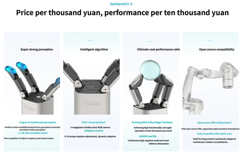 DexRobot DexHand021S - Mano Diestra de Tres Dedos con 8 Grados de Libertad, Sensor de Visión y Fuerza, Efector Final para Robot Industrial