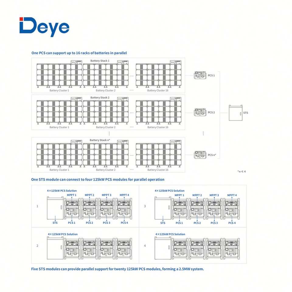 Deye BOS-B Pro-A3 Lithium Battery Rack 16.08kWh 257kWh Per Cluster Deye ESS 125kw PCS Inverter Price
