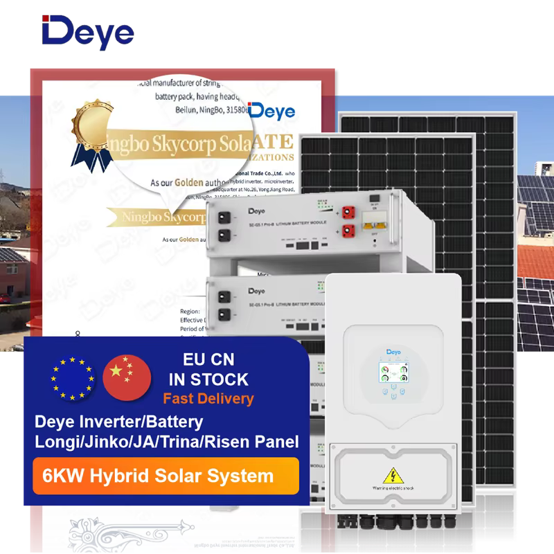 Sistema de Energía Solar Deye SUN-6K-SG03LP1-EU de 6KW con MPPT, Solución Solar para el Hogar, Inversor, Almacenamiento de Batería y Sistema de Monitoreo