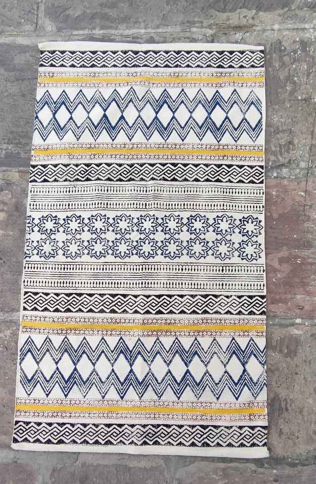 Alfombra Dhurrie Tejida a Mano, Personalizada, Ecológica, Estilo Boho, de Algodón para Exteriores, con Estampado de Bloques, para Sala de Estar, Puerta, Sala de Oración, Jardín