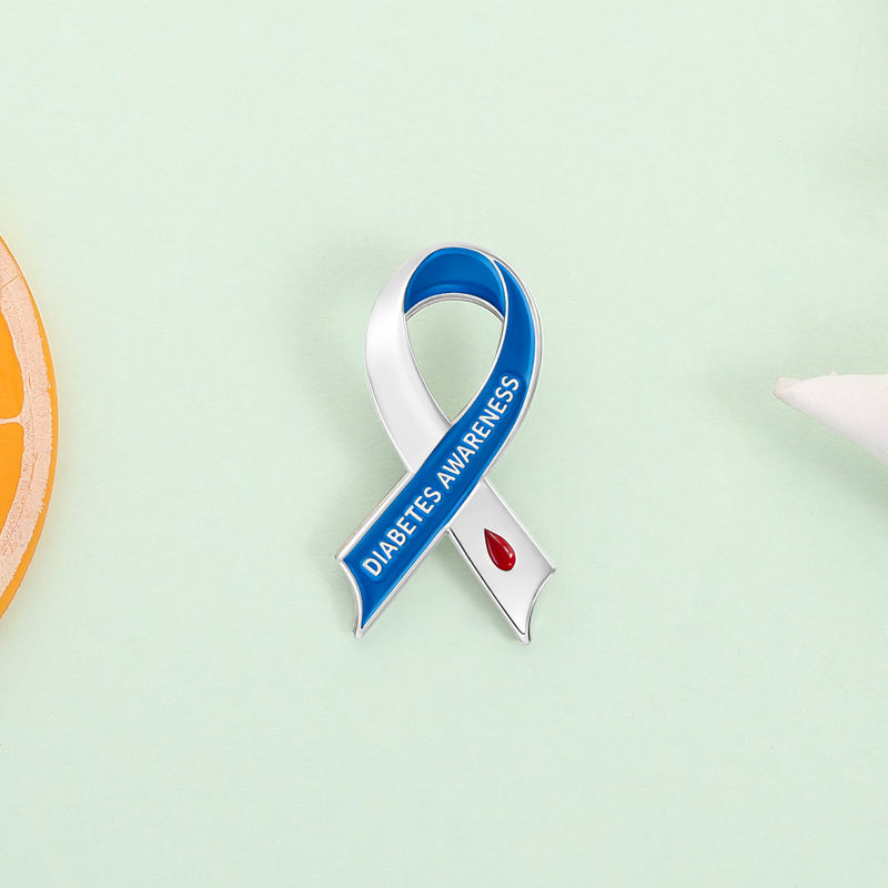 Broches de Esmalte con Cinta de Concientización sobre la Diabetes, Franja Azul y Blanca, Gota de Sangre Roja, Broche de Solapa, Venta al por Mayor