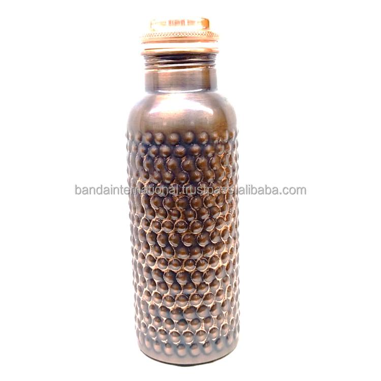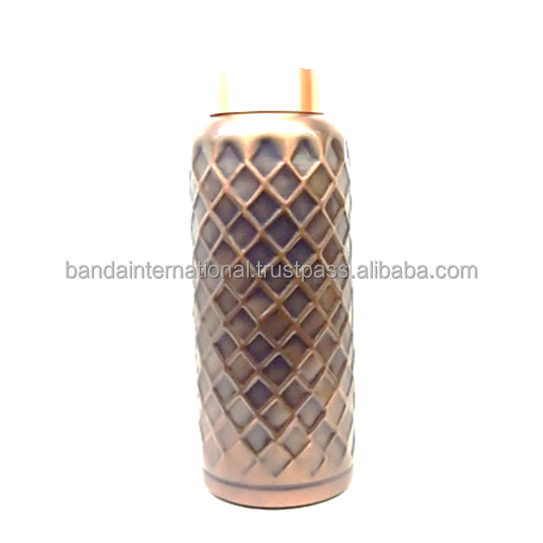 Botella de Cobre con Diseño Diagonal y Acabado Pulido, Hecha a Mano en India, con Beneficios para la Salud, Botella de Metal para Beber Agua