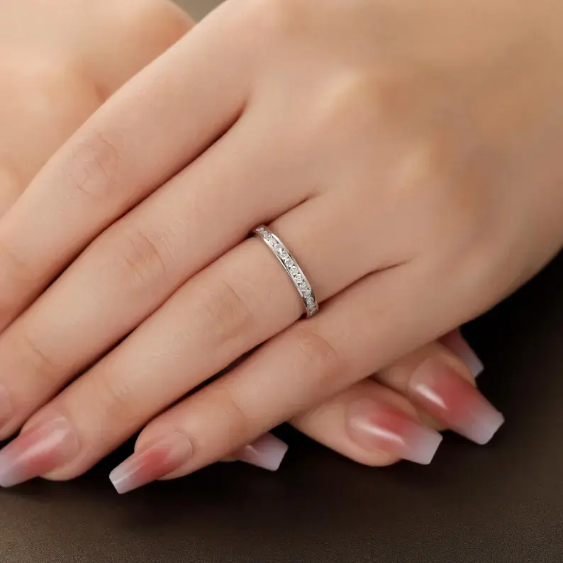 Anillo Apilable de Media Eternidad con Diamantes en Canal, Corte Redondo, Anillo de Moissanita para Regalo de Aniversario