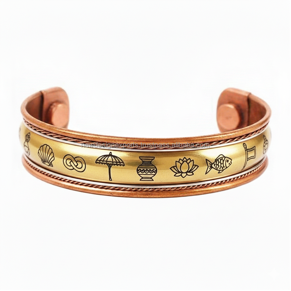 Kada de Cobre con Patrón de Corte de Diamante e Imanes, Grabado con Ocho Signos Auspiciosos