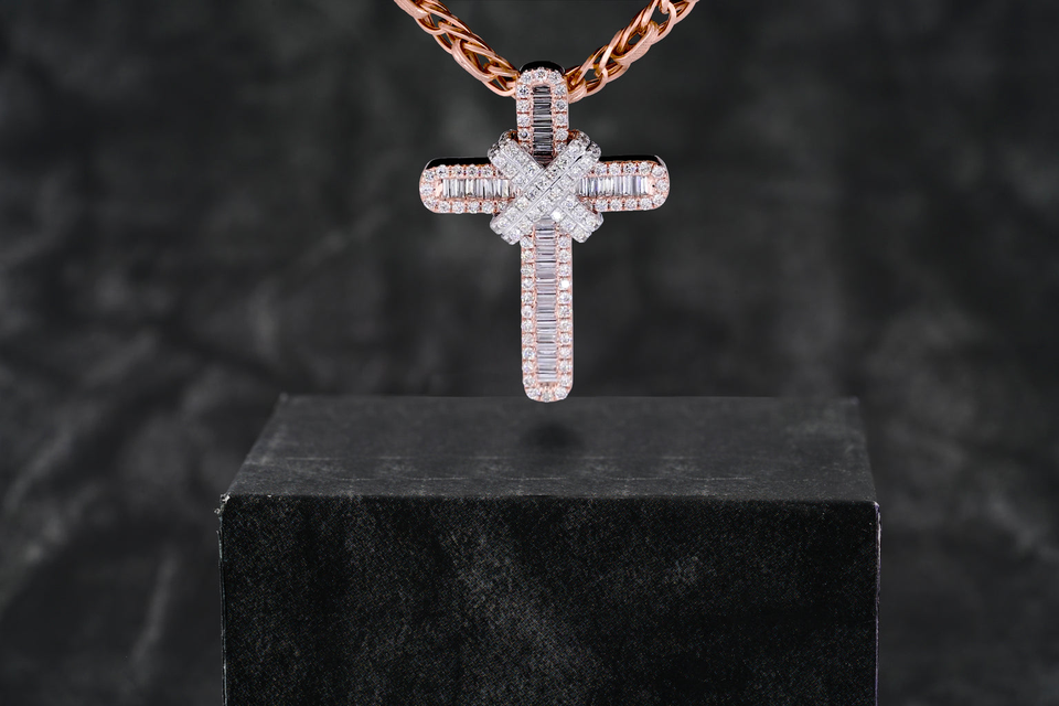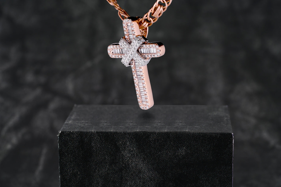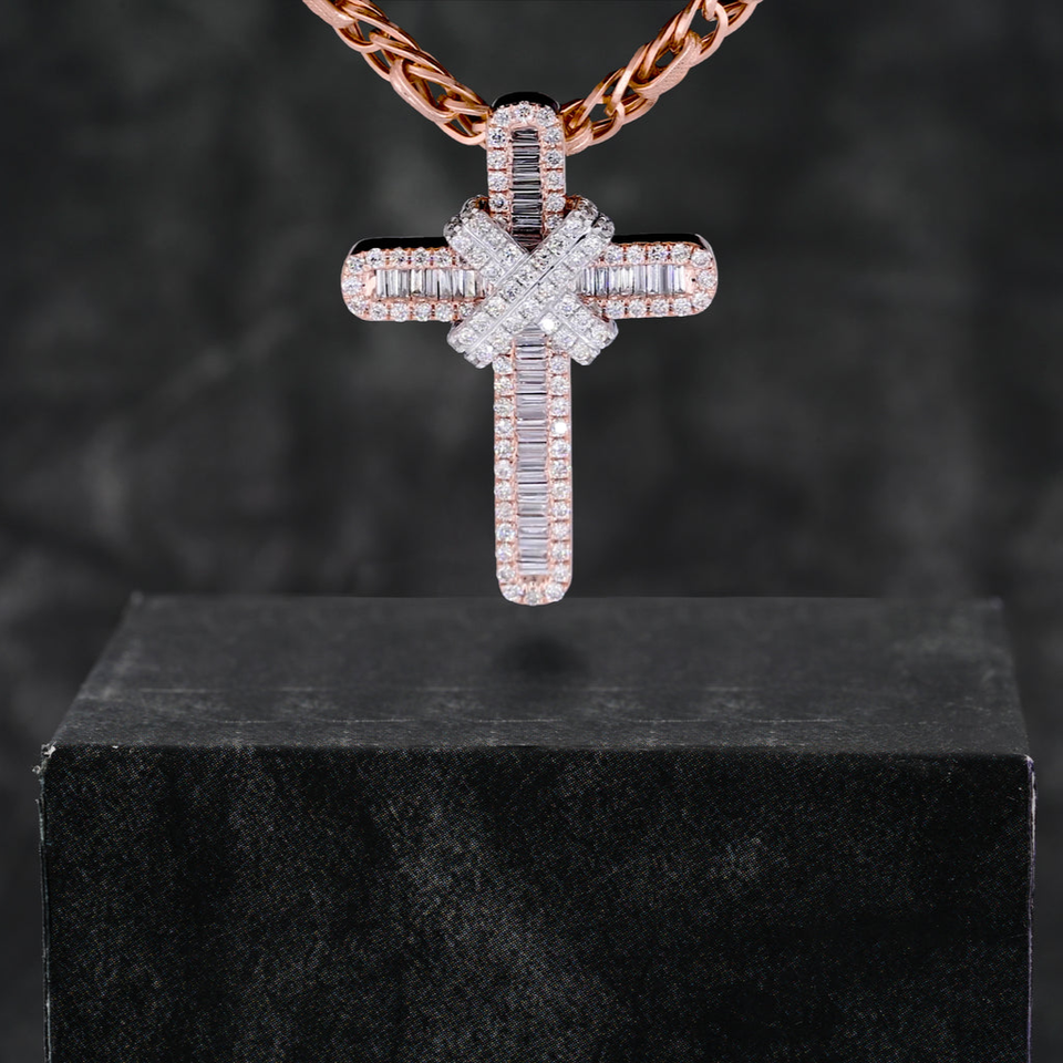 Collar con colgante de corte brillante redondo cultivado en laboratorio con doble cruz de diamante, joyería personalizada, regalo de cumpleaños Unisex