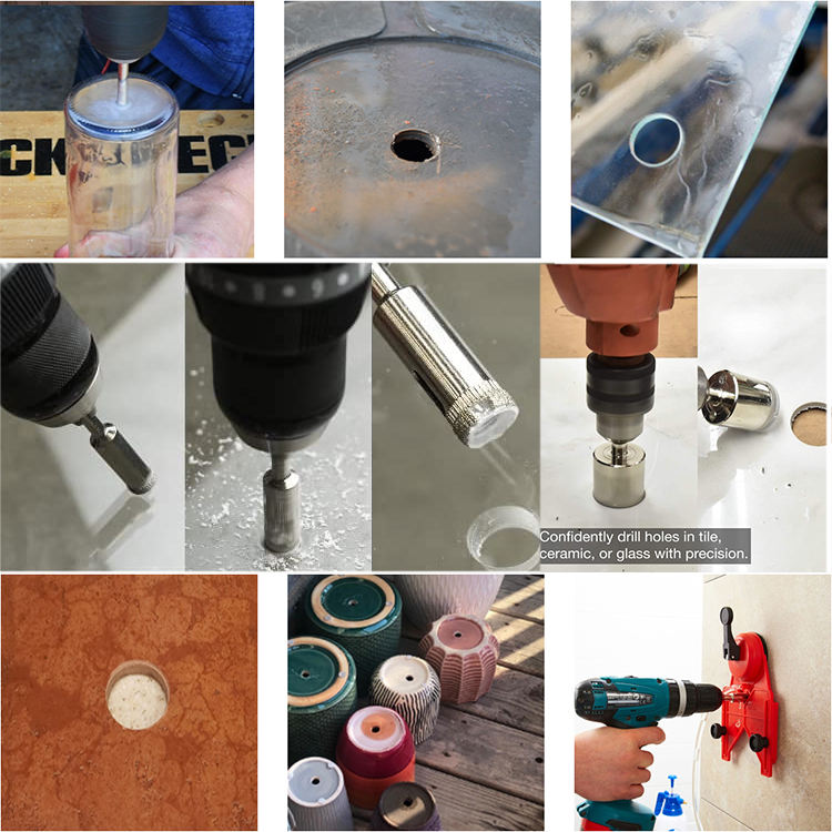 Juego de brocas de diamante con guía de sierra perforadora, accesorio de fijación, localizador de centraje ajustable, soporte de succión para vidrio, cerámica y azulejos