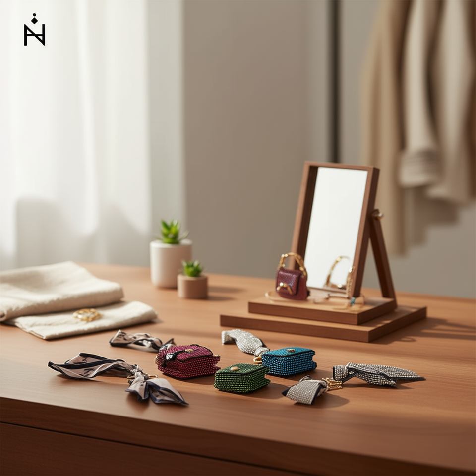 Llavero de Bolso Pequeño con Adornos de Diamantes y Cinta, 2 por Color, Accesorio de Moda