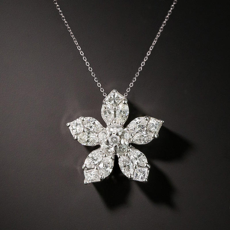 Colgante de flor de diamante en platino con diamantes naturales de corte marquesa para mujer, joyería de boda, certificado GIA