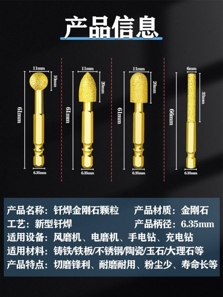 Cabezal de Pulido de Diamante con Vástago Hexagonal para Taladro Eléctrico, Lima Rotatoria para Grabado en Hierro Fundido, Aluminio y Piedra, Pulido de Metales y Soldadura