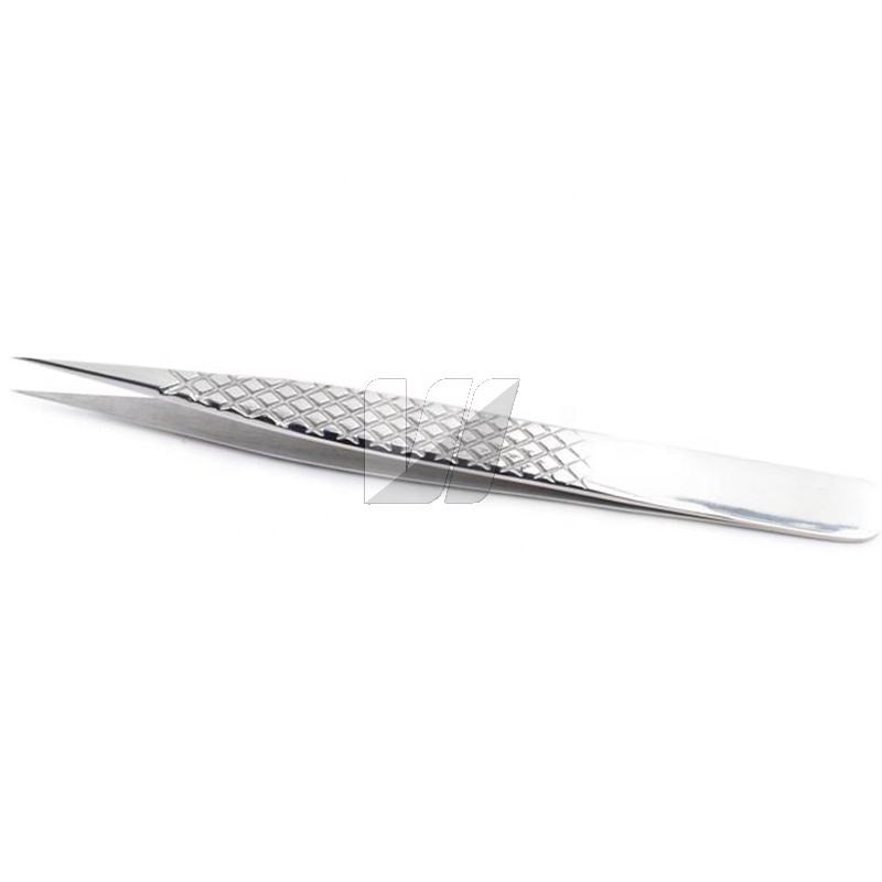 Pinzas de extensión de pestañas de acero inoxidable japonesas con agarre de diamante logotipo personalizado recubierto de Plasma para pestañas de volumen tipo punta puntiaguda