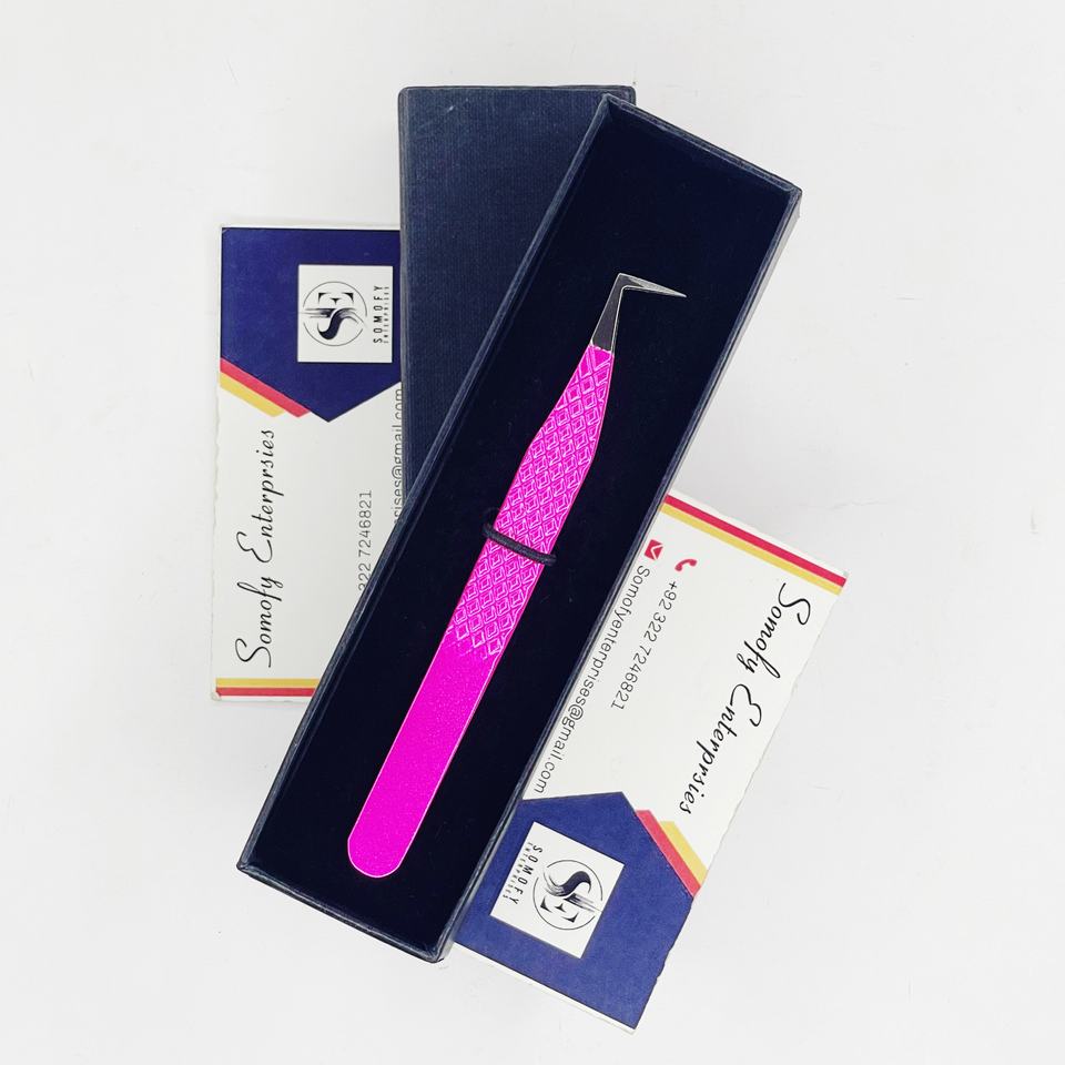 Pinzas de Precisión Somofy Enterprises Diamond Grip de Microfibra Antiestática y Duradera para Extensión de Pestañas, 90 Grados, Volumen, Acero Inoxidable