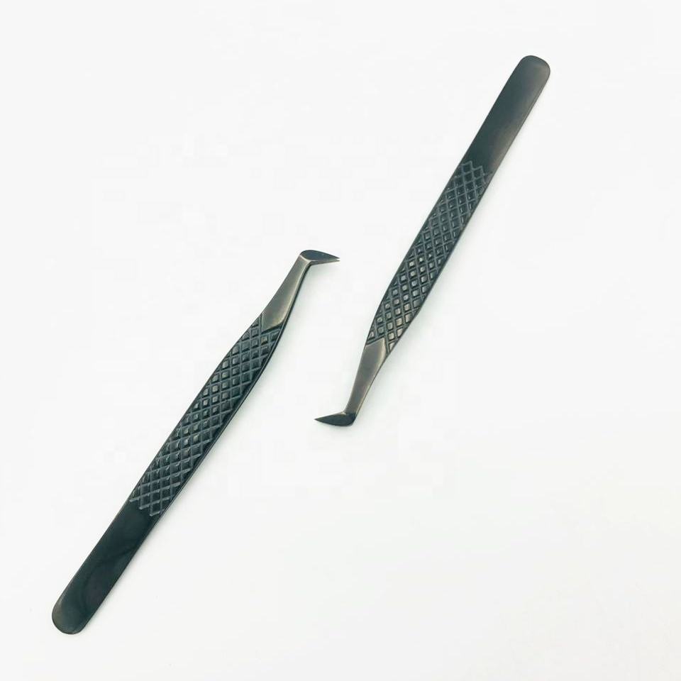 Pinzas para Pestañas de Acero Inoxidable de Venta Caliente con Punta de Fibra, Agarre de Diamante para Volumen, Duraderas, de Precisión, Antiestáticas, Mate, para Cuidado Personal