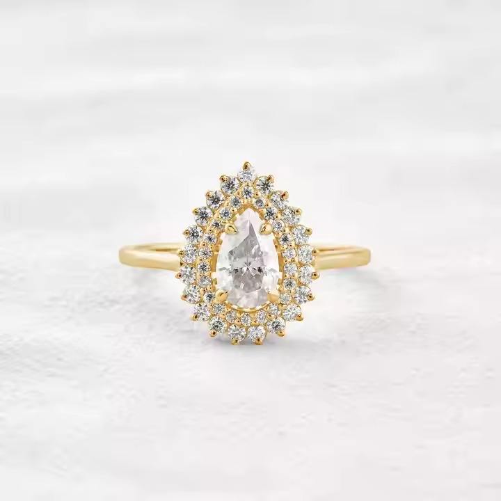 Joyería de diamantes corte de pera doble Halo diamante boda anillo CVD diamante anillo de compromiso para mujer regalo de aniversario lágrima Halo