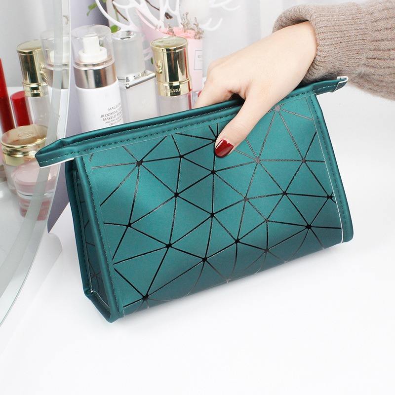 Bolsa de cosméticos con diseño de diamantes, diseño geométrico, impermeable, expandible, para uso diario de las mujeres