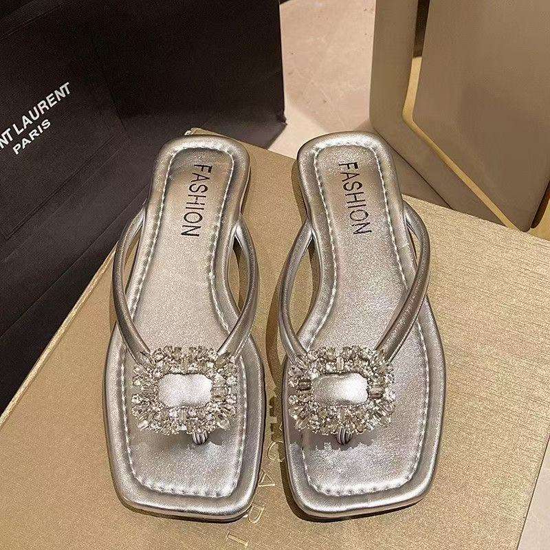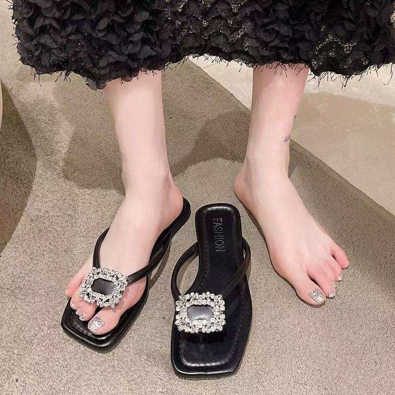 Sandalias de Playa Ligeras y Transpirables con Punta Cuadrada y Hebilla de Diamantes de Imitación, Estilo Coreano, para Mujer