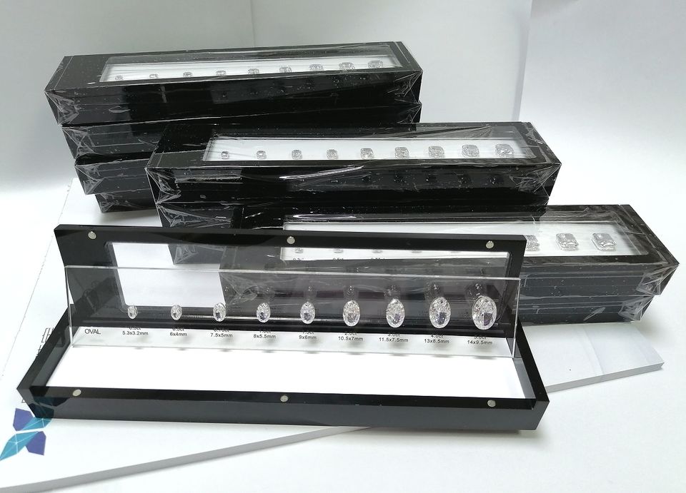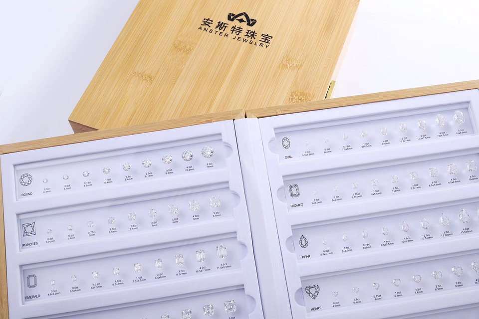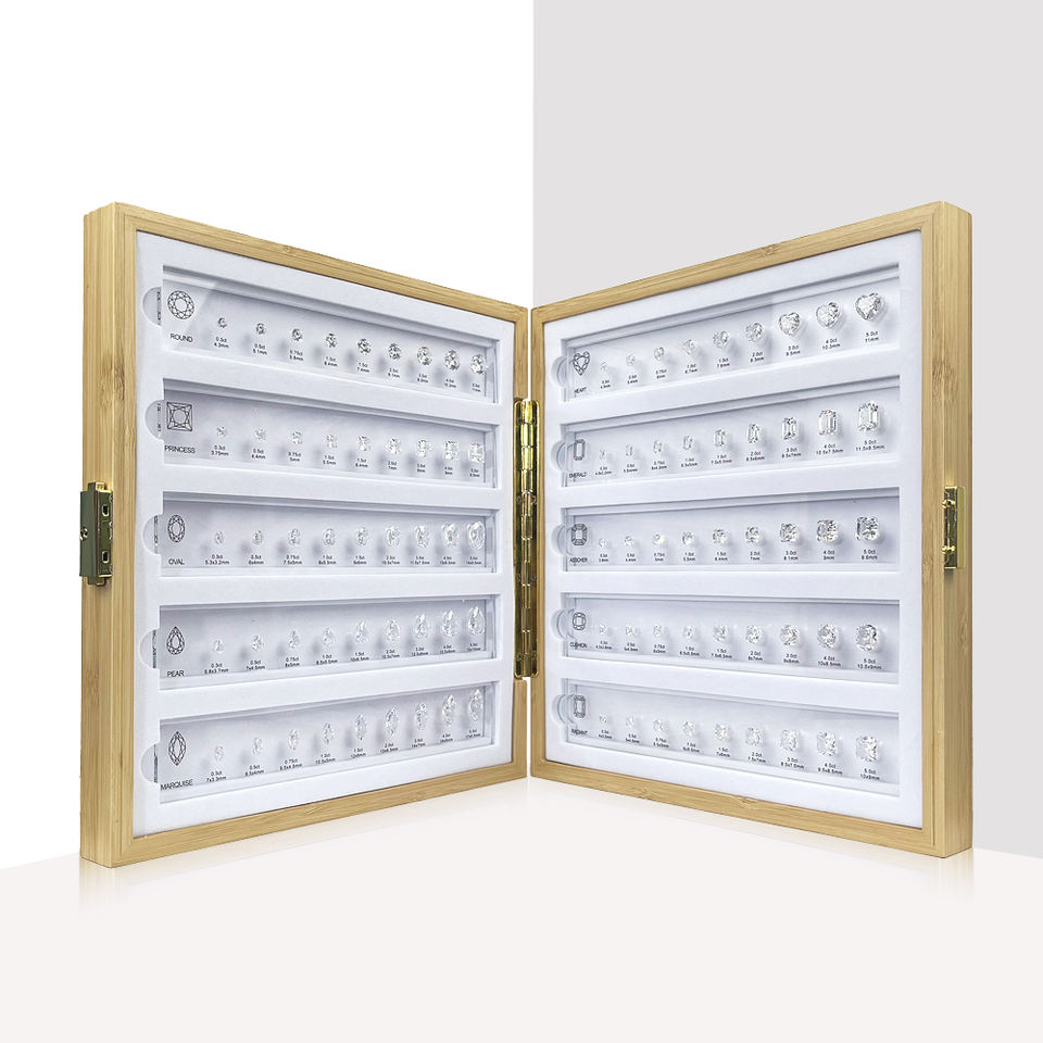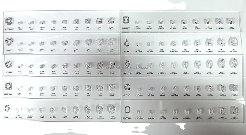 Selector de diamantes, tabla de tallas de quilates, formas elegantes y caja completa, logotipo personalizado, circonita cúbica, piedras preciosas sueltas para joyería