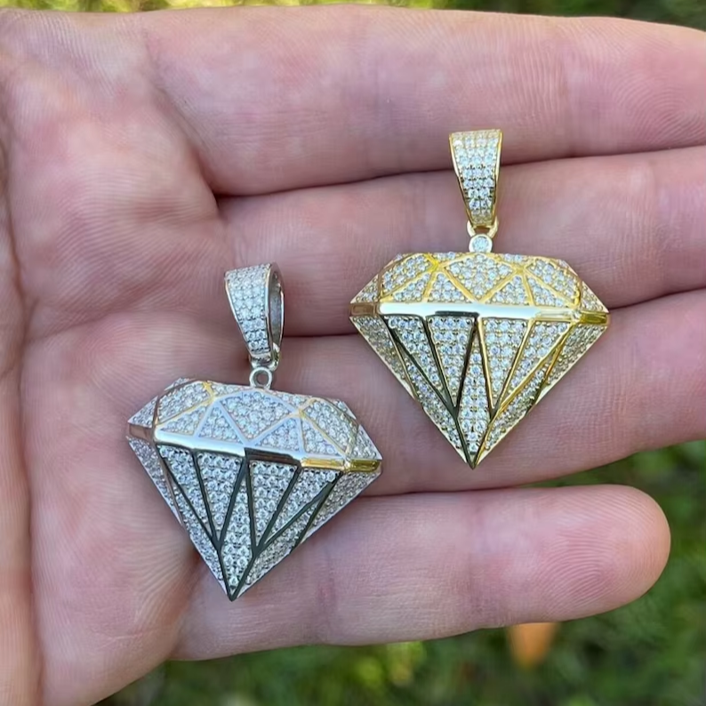 Colgante de Moissanita en Forma de Diamante en Plata de Ley 925, Estilo Hip Hop, Lujoso, para Hombre y Mujer