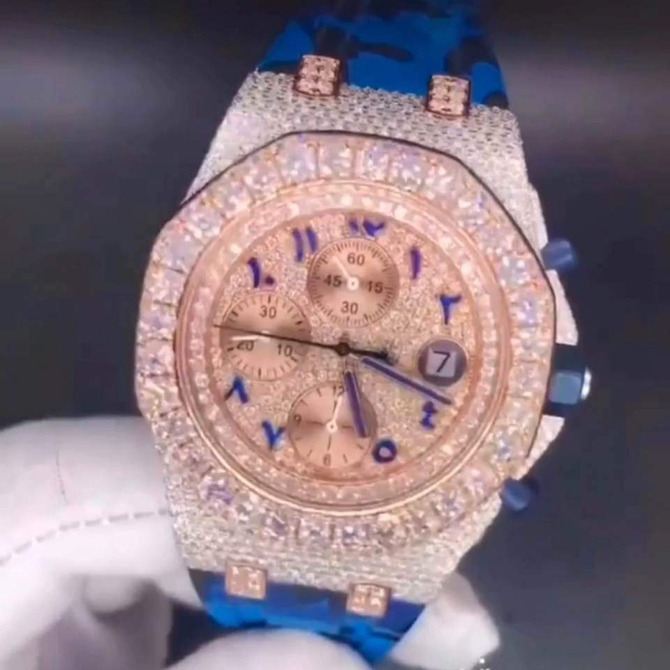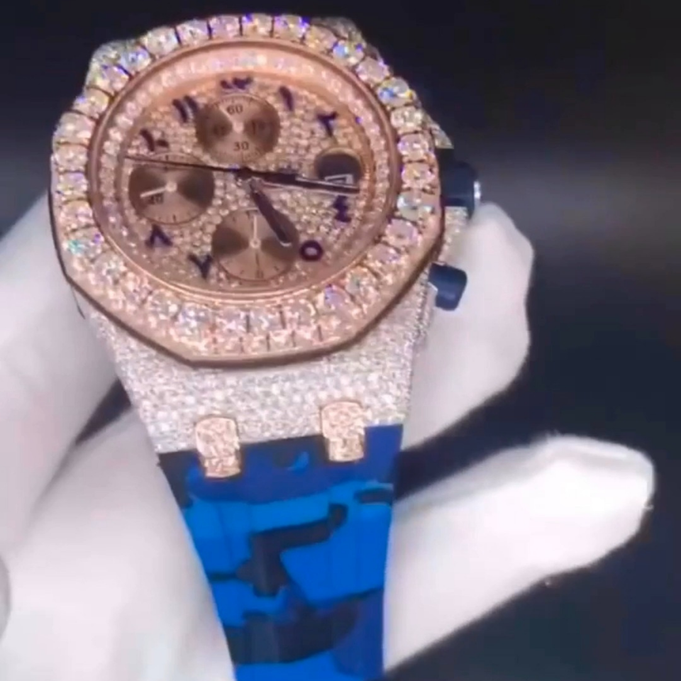 Nombre del producto:Reloj de moissanita VVS con incrustaciones de diamantes, pasa el probador de diamantes