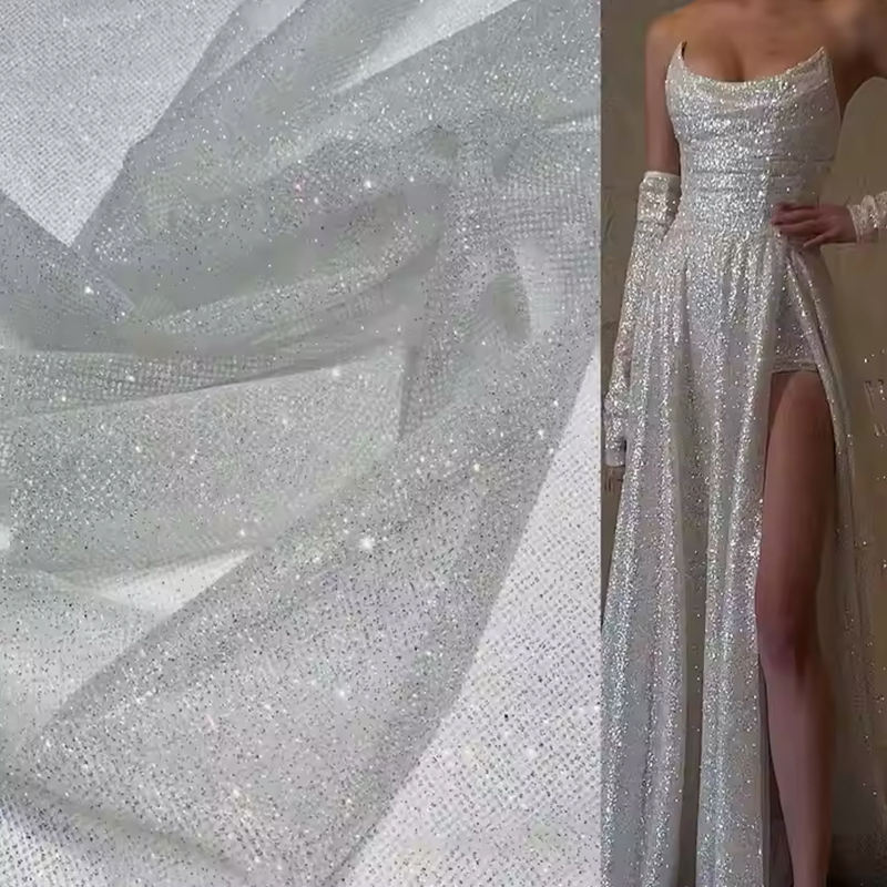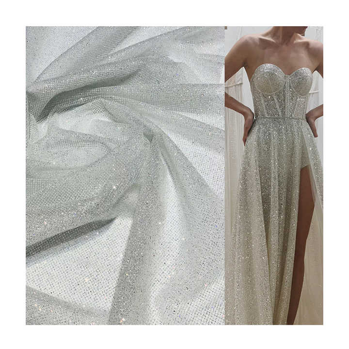Nombre del producto:Diamante Tul Marfil Glitter Net Fabric