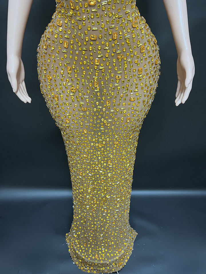 Conjunto de Dos Piezas con Diamantes, Vestido de Noche de Lujo, Vestido de Novia Juvenil con Malla, Ropa Formal para Mujer