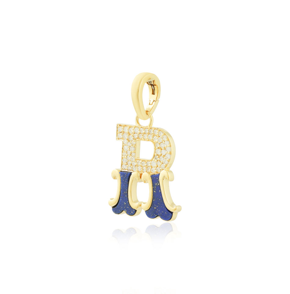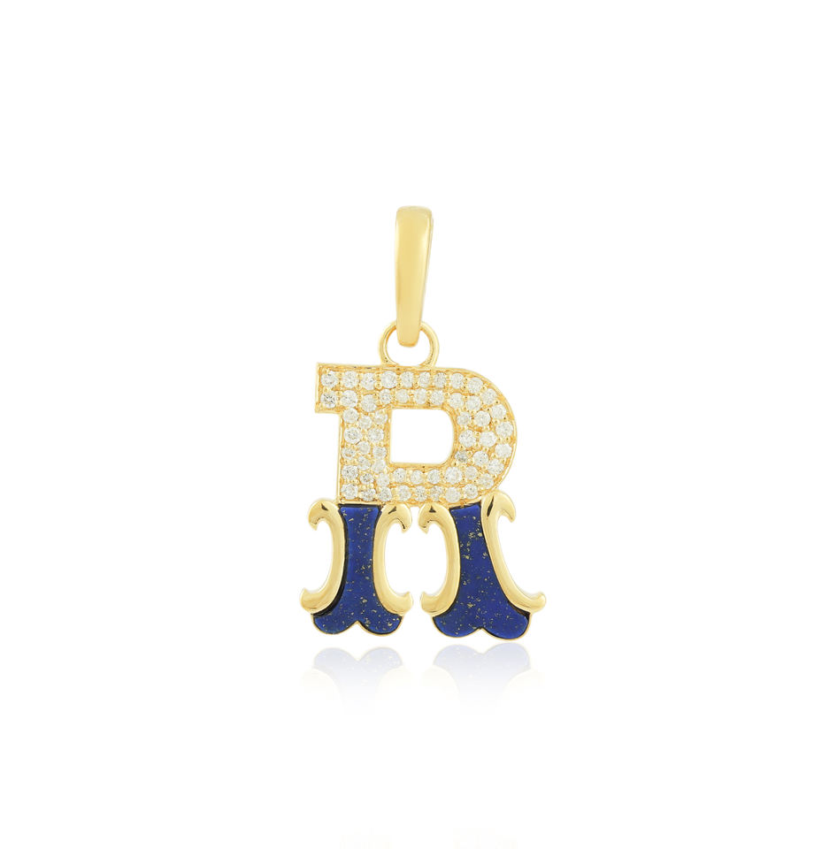Colgante con inicial R de diamantes y lapislázuli